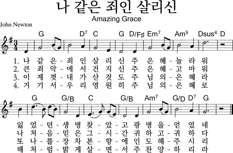 1 놀라우신 은혜 G 2 나 같은 죄인 살리신 G |