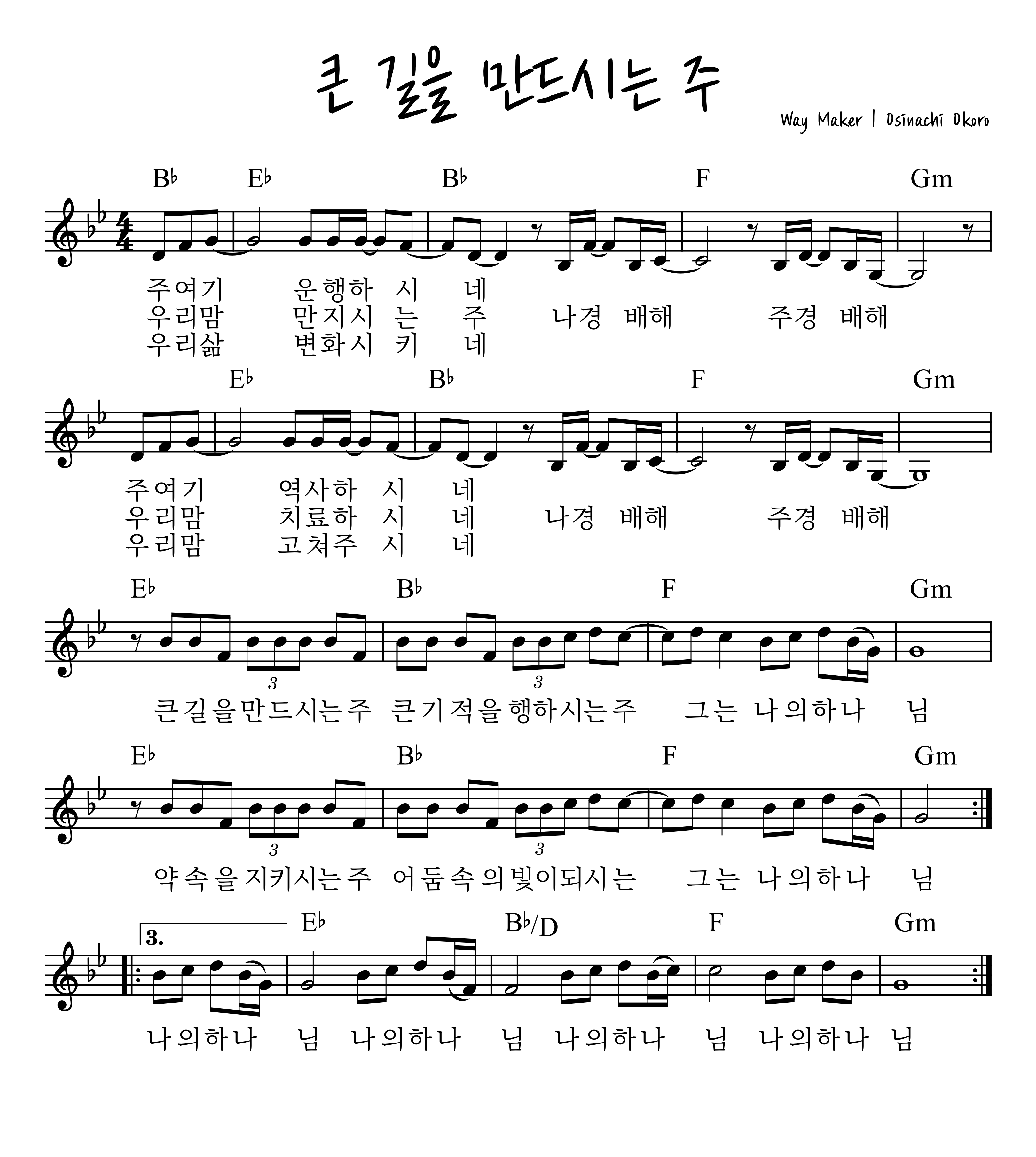 * 큰 길을 만드시는 주 악보 - 마커스워십 유튜브 버전 가사, 브릿지 없음