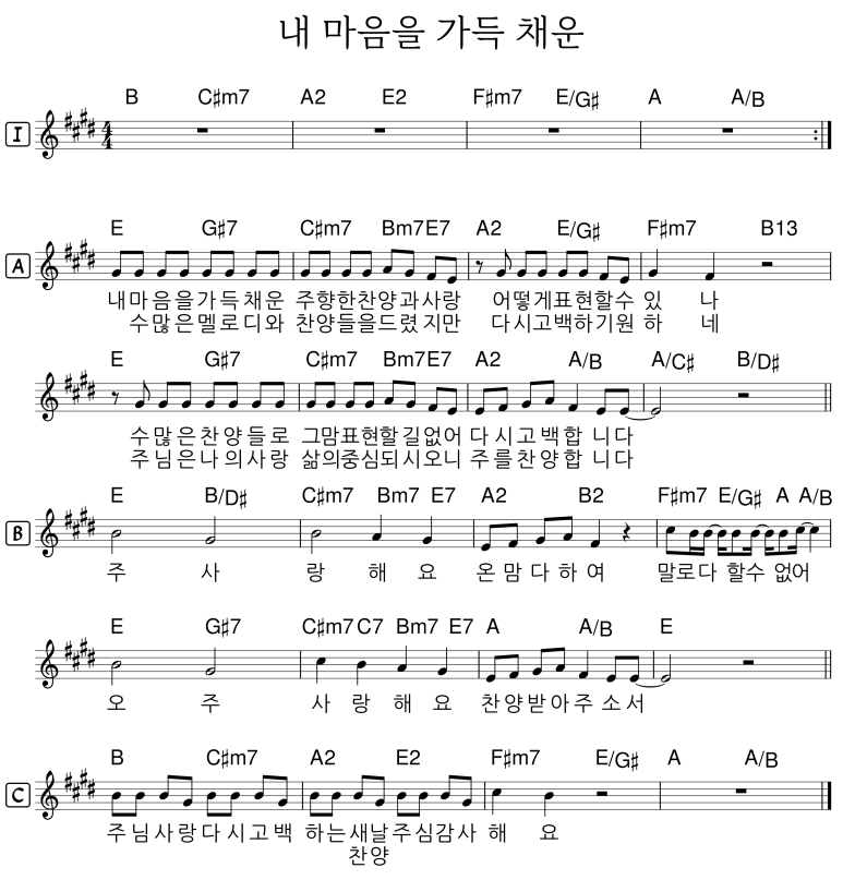 1 내 마음을 가득 채운 E 2 나 주님의 기쁨 되기 원하네 G |