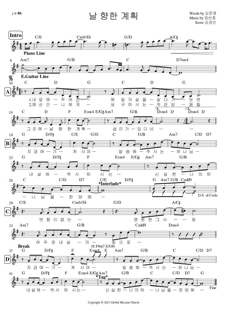 1 날 향한 계획 A 2 그가 오신 이유 G |