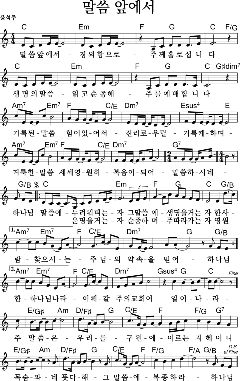 | 1 말씀이 육신되어 E 2 말씀앞에서 C |