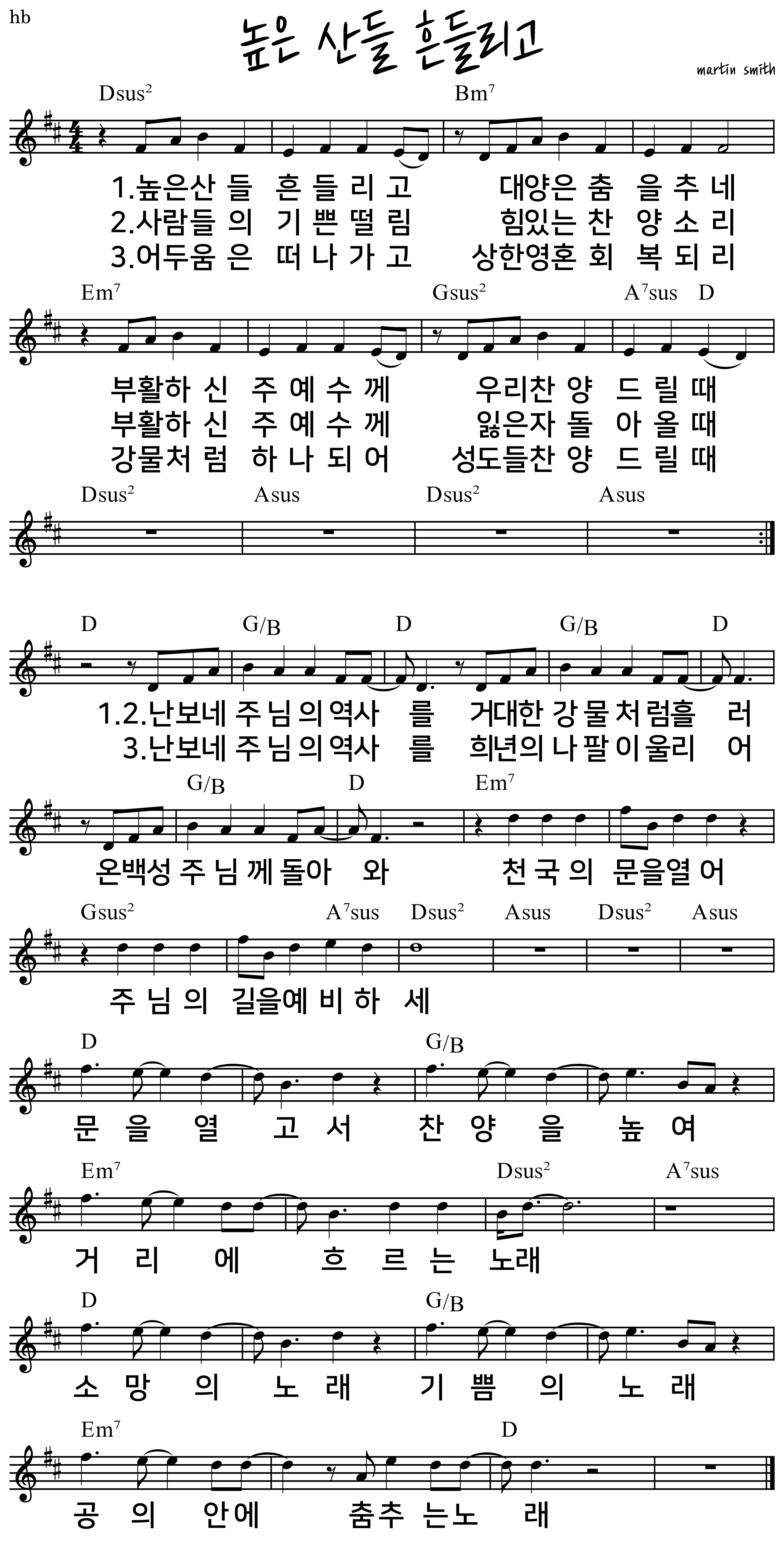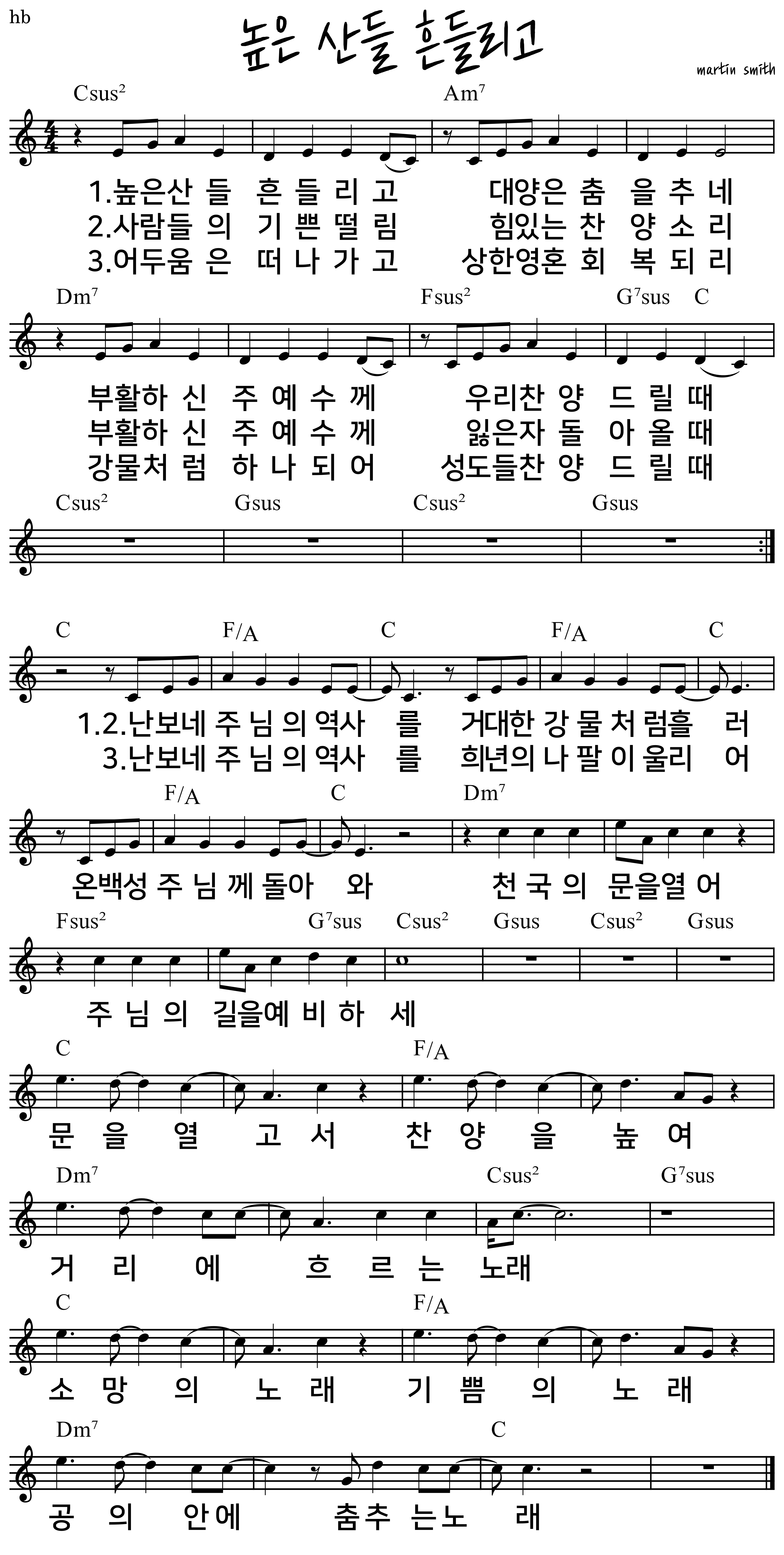 [Ver. 1] 높은 산들 흔들리고 대양은 춤을 추네 부활하신 주 예수께 우리 찬양 드릴때 |